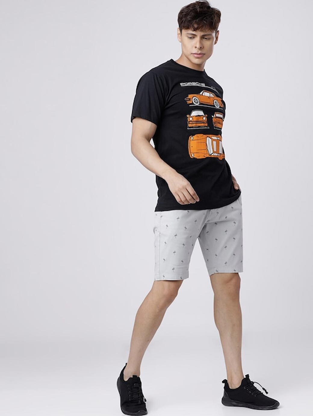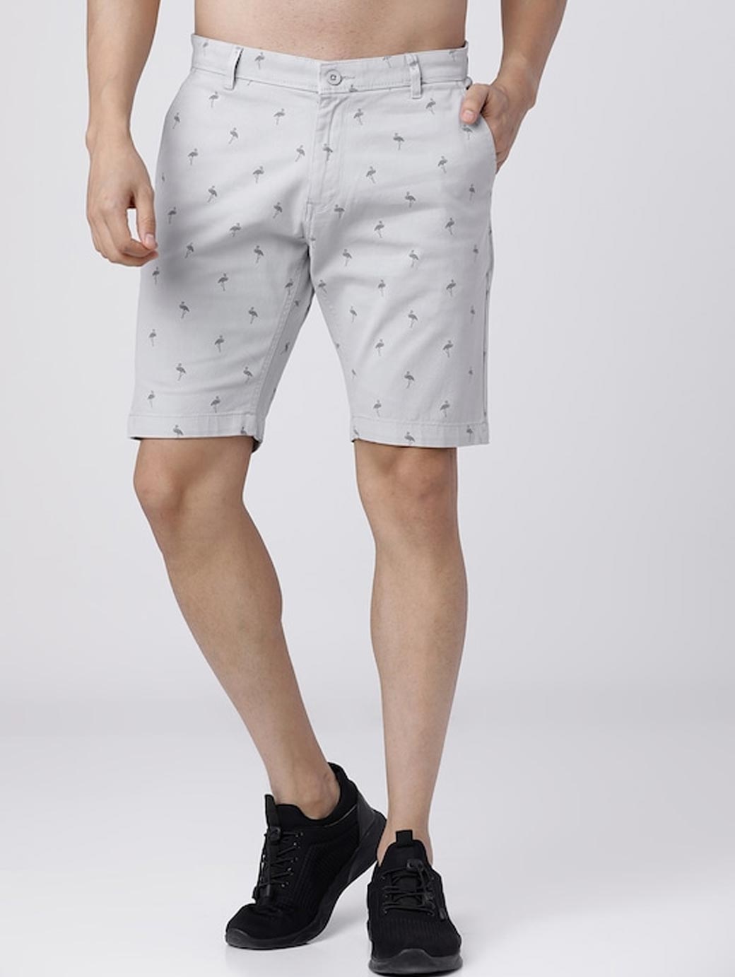 These trendy grey printed shorts will help you set the tone for this season. Grey printed mid-rise chino shorts, has 4 pockets, and button closure.