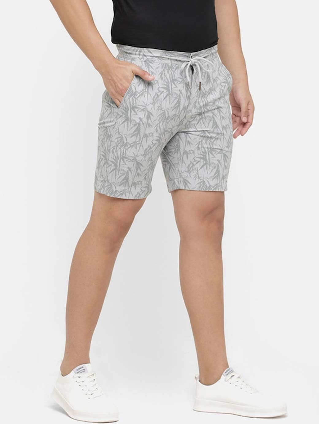 Men Grey Printed Slim Fit Regular Shorts