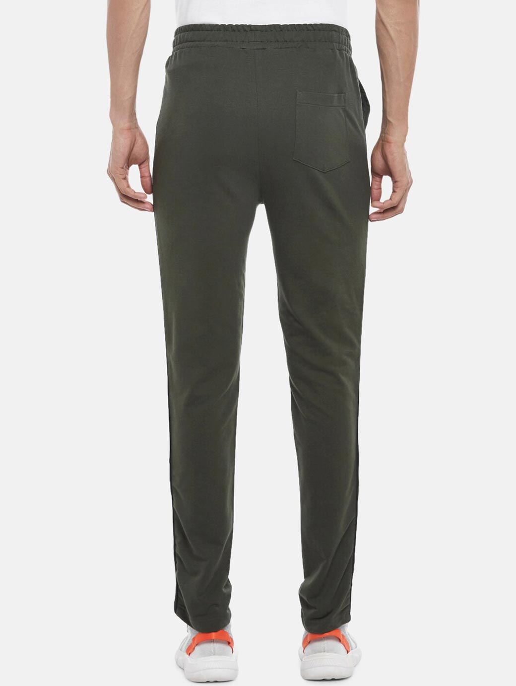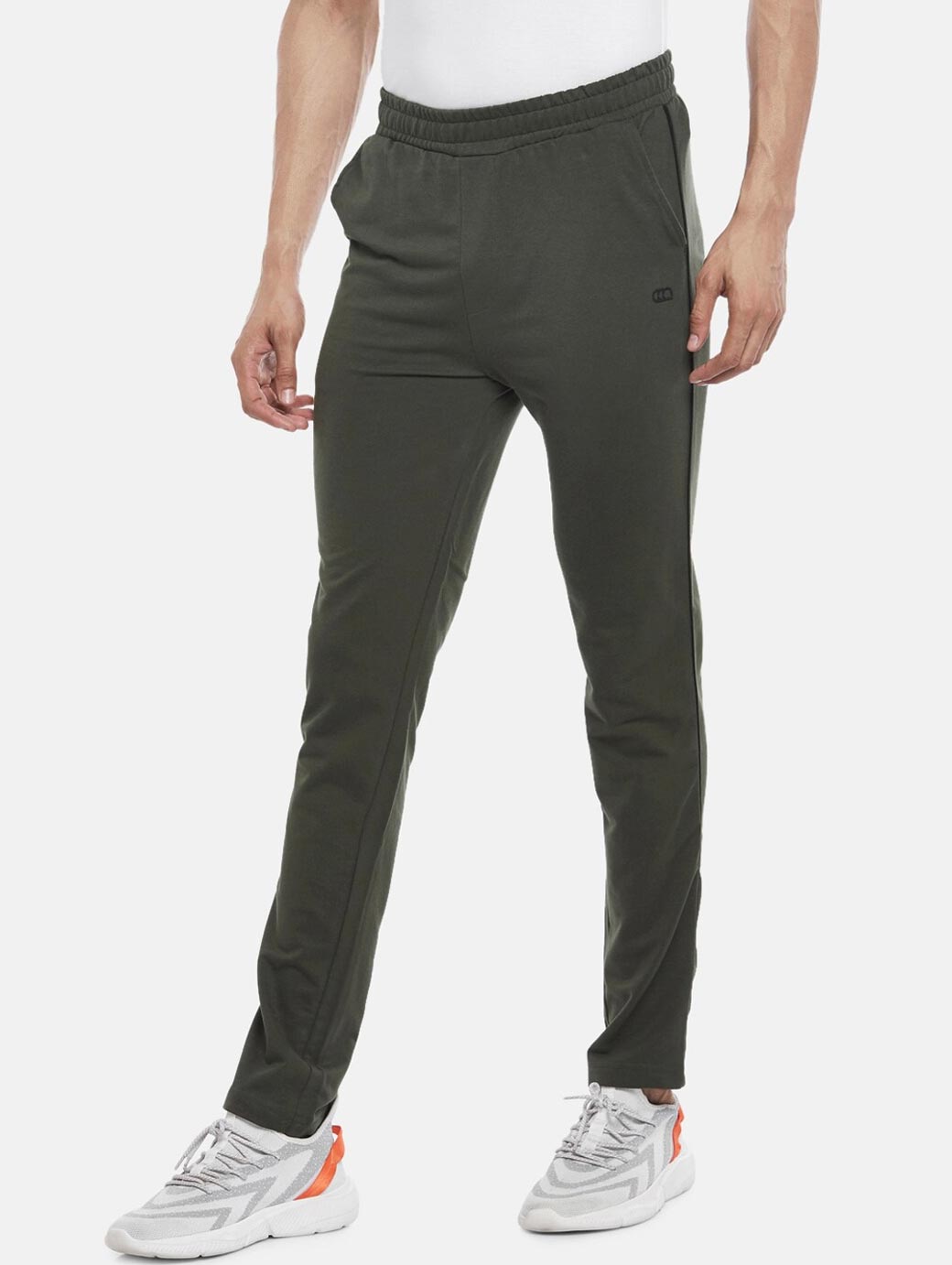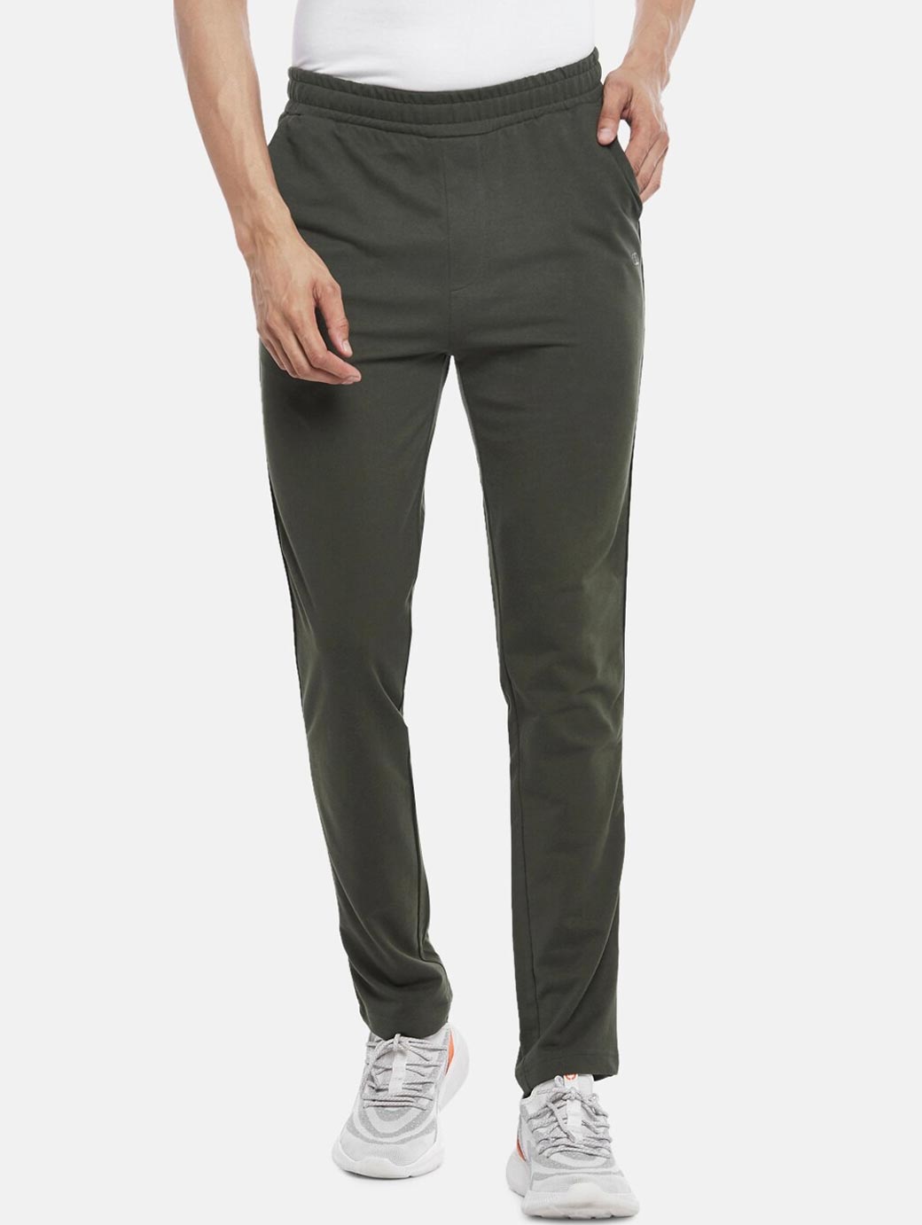 Olive-green solid slim-fit track pants, has an elasticated waistband with slip-on closure and 3 pockets