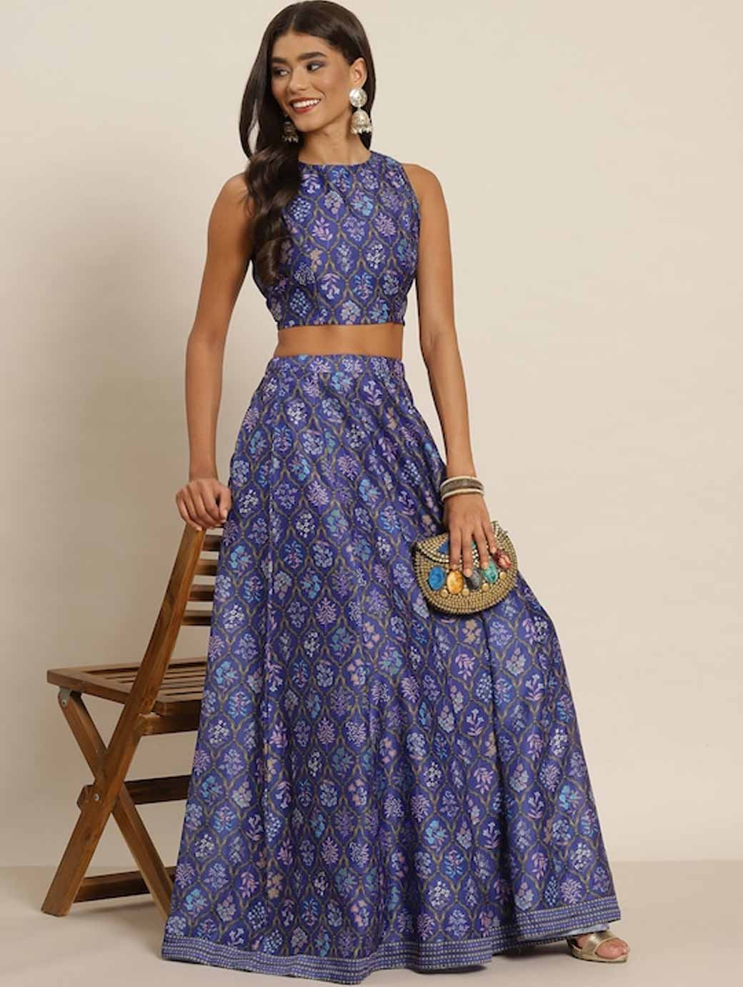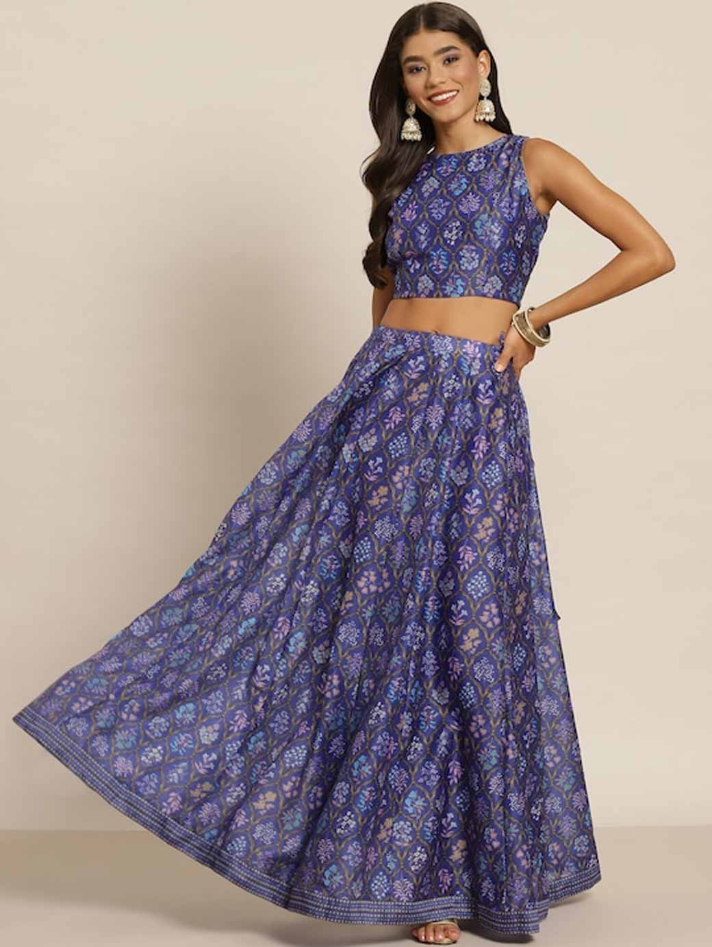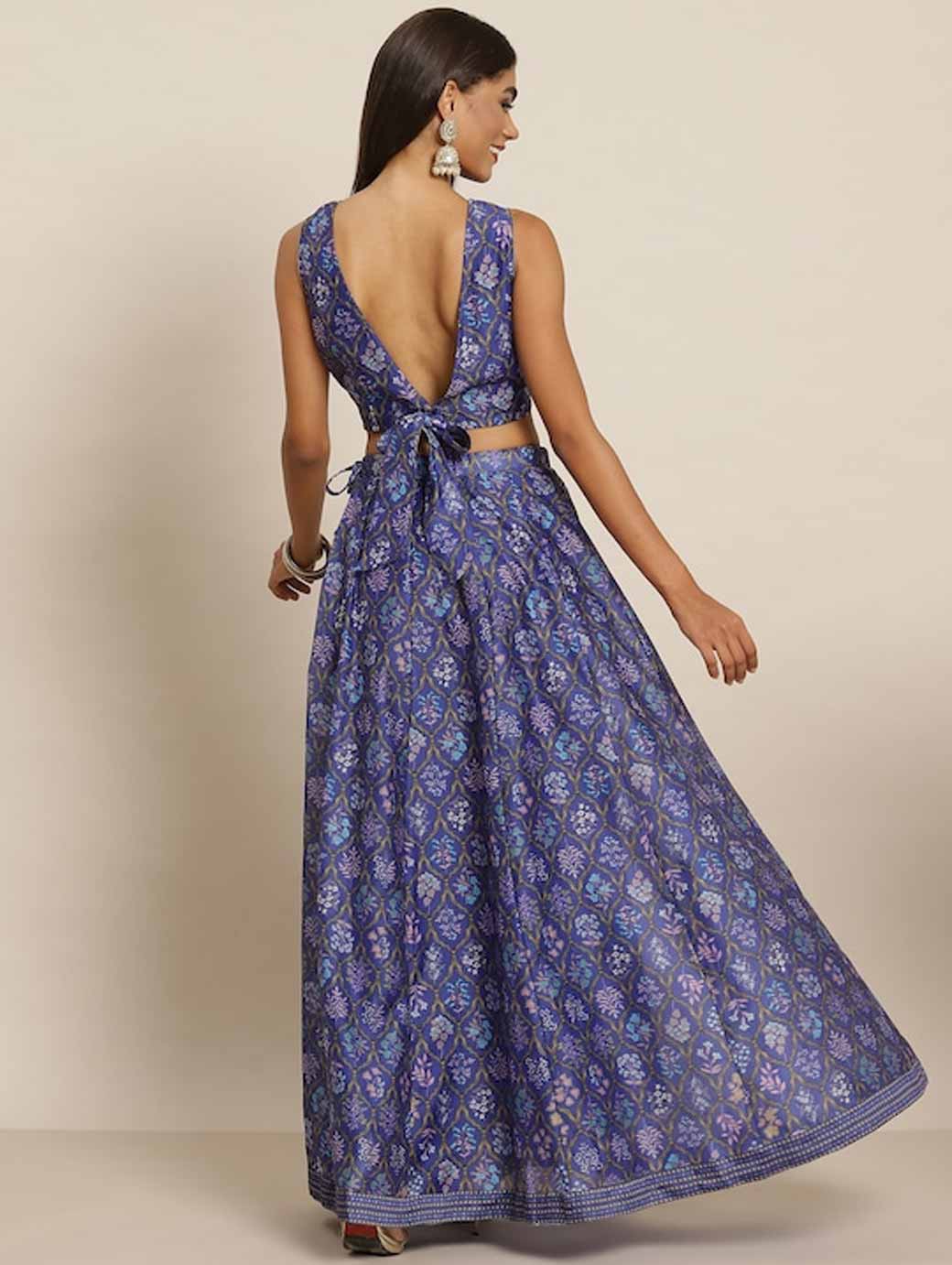 Purple and blue printed lehenga choli,