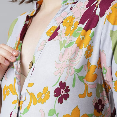 Grey and maroon floral print empire dress